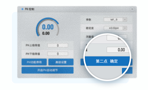 ⑤ 将玻璃球泡部分浸没在第二种缓冲液(例pH=9.18)内(隔膜应完全浸没在缓冲液中),待标准值稳定后(30秒至60秒)点击第二点确认,第二点标定结束,等待使用(建议时间不要太长)。