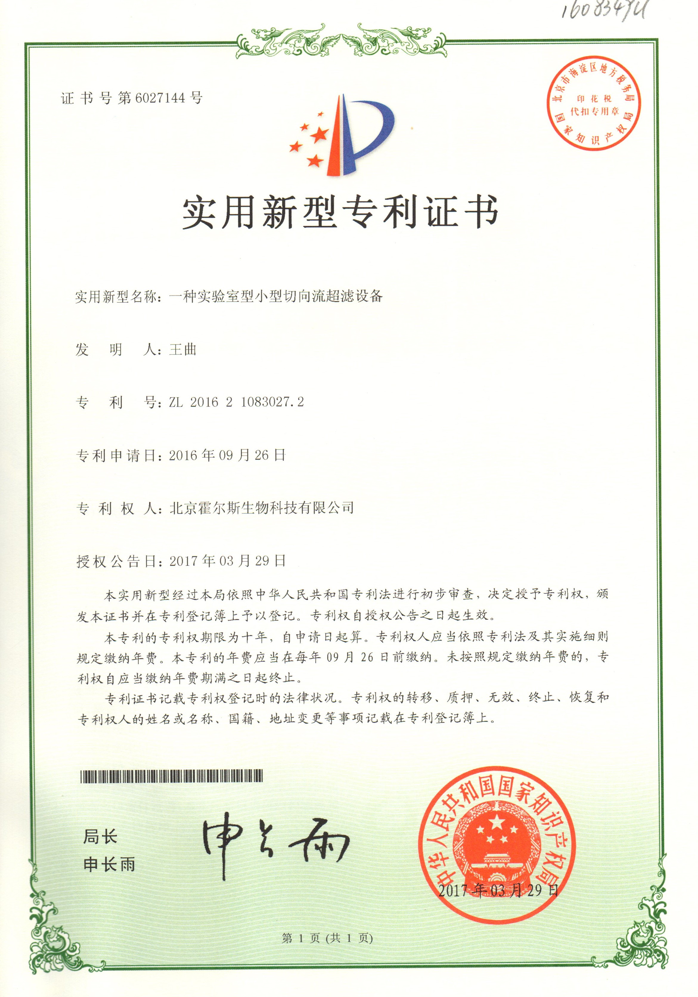 lewin乐玩获得切向流过滤设备的专利 时间:2018.01.22